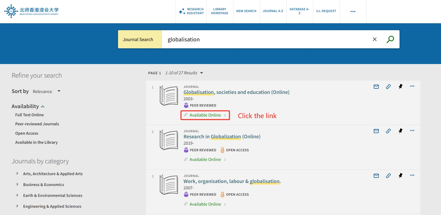 Type in the title or ISSN of the journal. Run your search and the key journals are listed below.